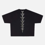 The Rockstar Tee embodies main-stage energy on our signature streetwear silhouette. This piece makes a statement from every angle, featuring a vibrant, embellished-style “Victorious Culture” on the front and a striking spiky chain graphic down the spine on the back.